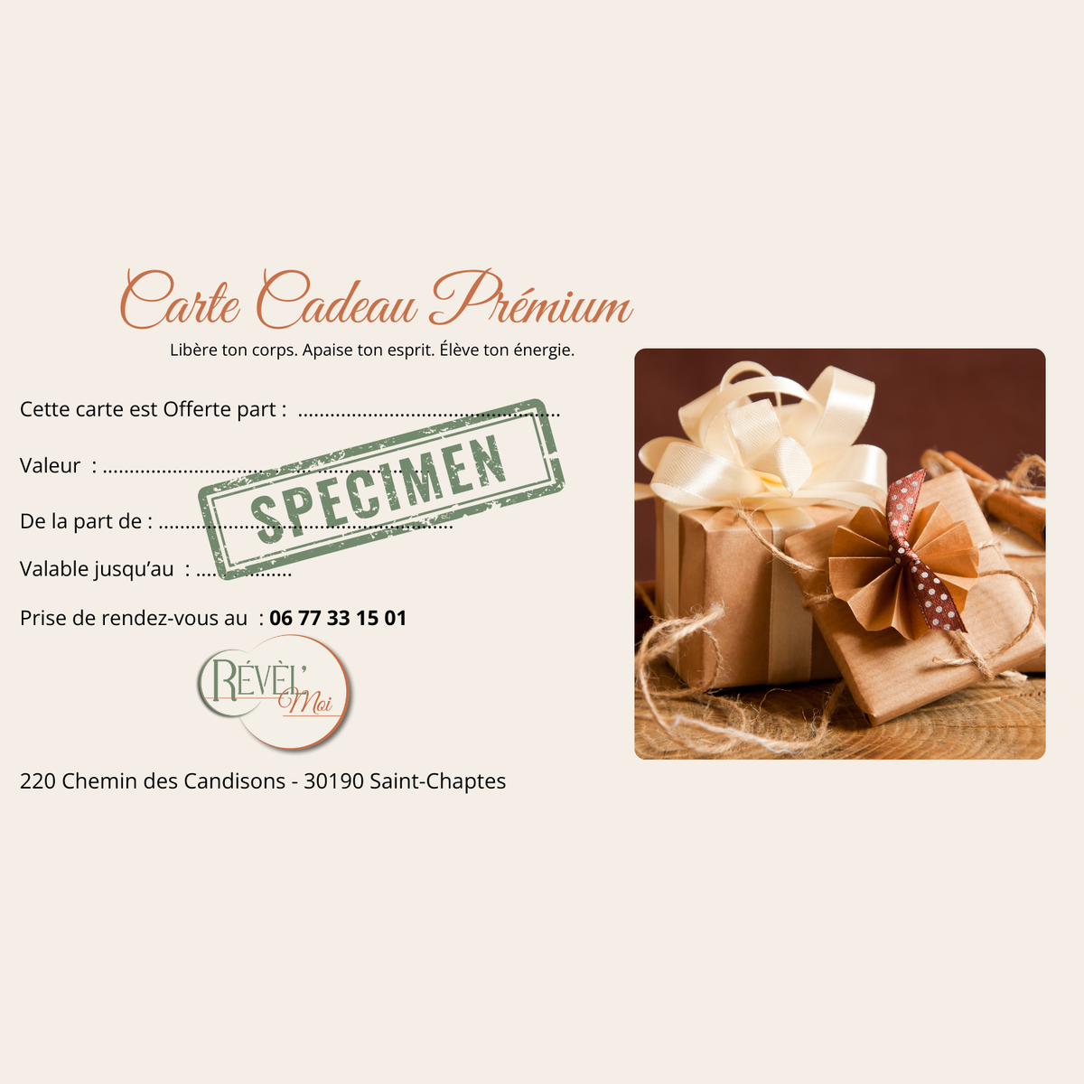 Carte Cadeau Premium REVEL’MOI L’expérience bien-être complète, sans limite de choix 100,00 € Ajouter